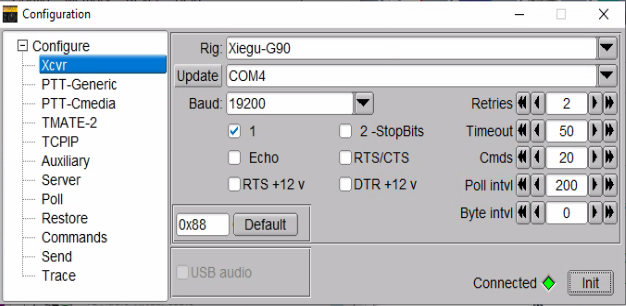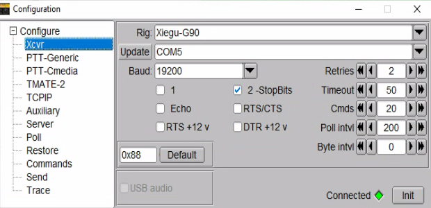 • FLRig 1.4.4.15 Alpha is being used, mainly for ATU CAT control improvements for the G90