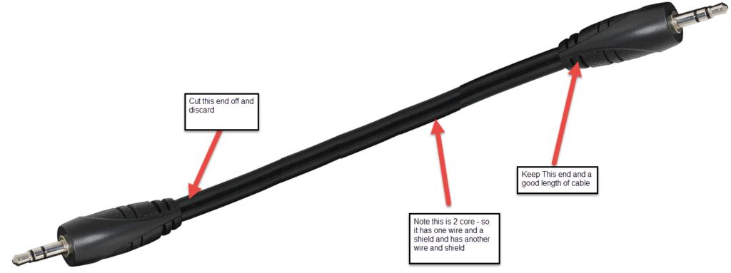 - 2 x 3.5mm plug (TRS) ended cables with Tinned wire ends on the end of each of the cables